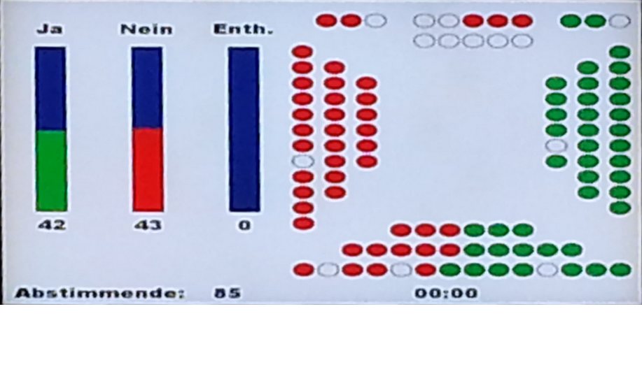Wie an jeder Landratssitzung seit dem 14. September fanden sich auch gestern Mitglieder der Baselbieter Personalverbände zu einem stillen Protest im Landrat ein. So konnten wir das knappe Abstimmungsergebnis direkt von der Anzeigetafel abfotografieren (siehe oben).
